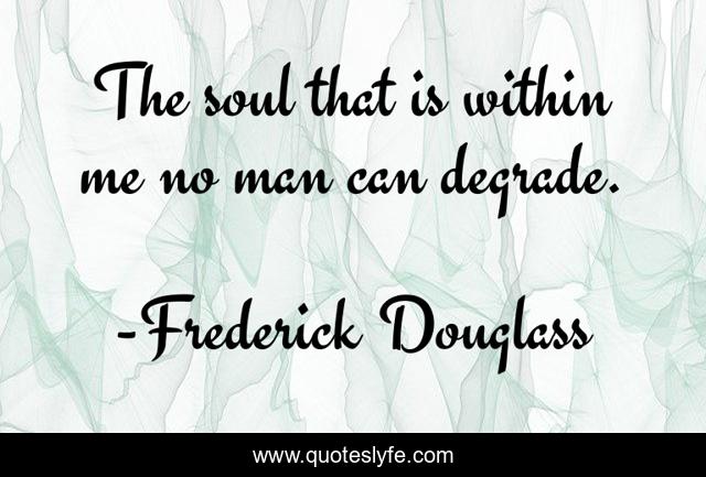 This page presents the quote "The soul that is within me no man can degrade.". Author of this quote is Frederick Douglass. This quote is about me, soul, man,.