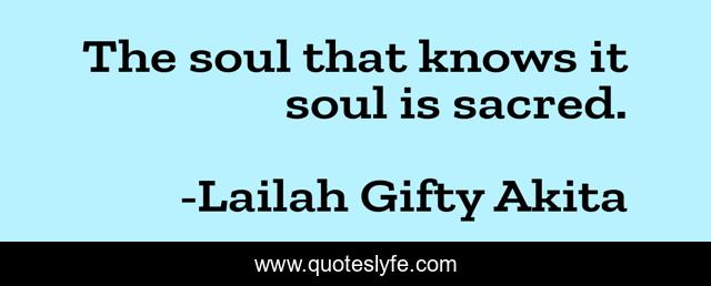This page presents the quote "The soul that knows it soul is sacred.". Author of this quote is Lailah Gifty Akita. This quote is about spiritual, soul, sacred,.