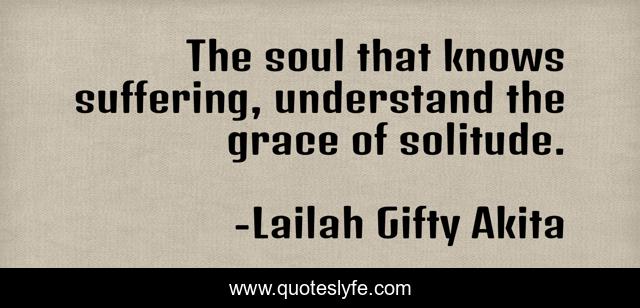 This page presents the quote "The soul that knows suffering, understand the grace of solitude.". Author of this quote is Lailah Gifty Akita. This quote is about christian, solitude, soul, suffering, self-help, inner-strength, overcomer, grace,.