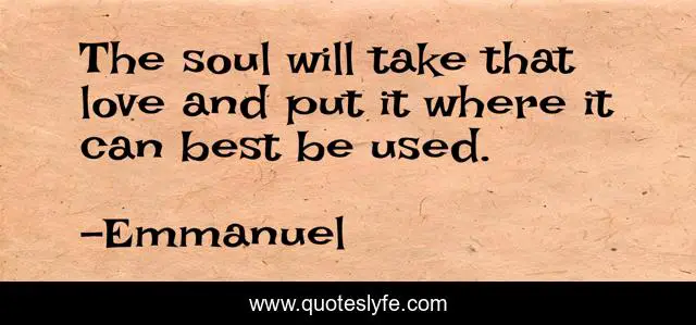 This page presents the quote "The soul will take that love and put it where it can best be used.". Author of this quote is Emmanuel. .