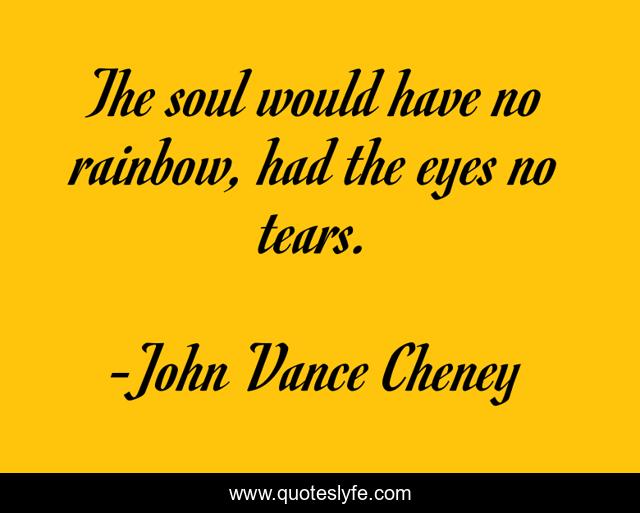 This page presents the quote "The soul would have no rainbow, had the eyes no tears.". Author of this quote is John Vance Cheney. This quote is about soul, spirit,.