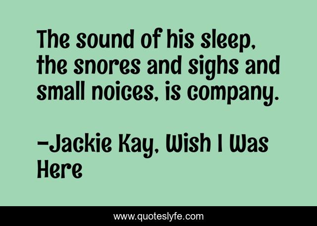 "Jackie Kay, Wish I Was Here Quotes." Quoteslyfe.com, 2025. Fri. 05 Dec. 2025. <https://www.quoteslyfe.com/quote/The-sound-of-his-sleep-the-snores-120501>.