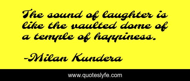 This page presents the quote "The sound of laughter is like the vaulted dome of a temple of happiness.". Author of this quote is Milan Kundera. This quote is about sound, laughter, temple,.