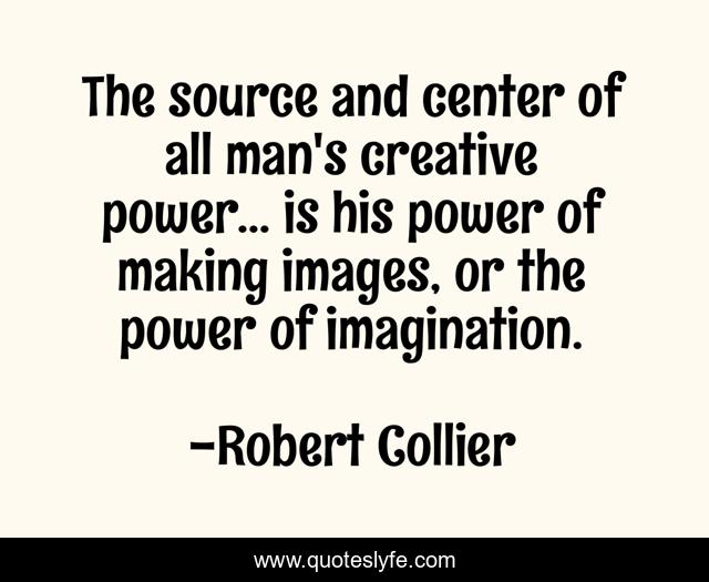 This page presents the quote "The source and center of all man's creative power... is his power of making images, or the power of imagination.". Author of this quote is Robert Collier. This quote is about man, power, creative,.