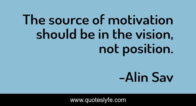 This page presents the quote "The source of motivation should be in the vision, not position.". Author of this quote is Alin Sav. .