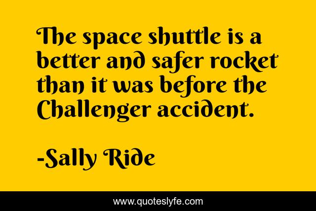 This page presents the quote "The space shuttle is a better and safer rocket than it was before the Challenger accident.". Author of this quote is Sally Ride. This quote is about better, rocket,.