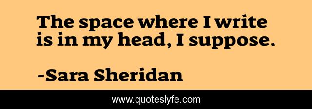 This page presents the quote "The space where I write is in my head, I suppose.". Author of this quote is Sara Sheridan. This quote is about head, mental, space, writer, writing, method,.