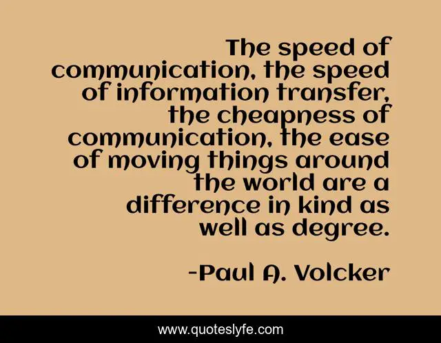 "Paul A. Volcker Quotes." Quoteslyfe.com, 2025. Fri. 05 Dec. 2025. <https://www.quoteslyfe.com/quote/The-speed-of-communication-the-speed-of-288349>.