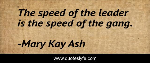 This page presents the quote "The speed of the leader is the speed of the gang.". Author of this quote is Mary Kay Ash. .