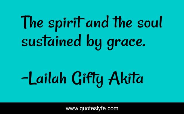 This page presents the quote "The spirit and the soul sustained by grace.". Author of this quote is Lailah Gifty Akita. This quote is about spirituality, soul, divine-grace,.