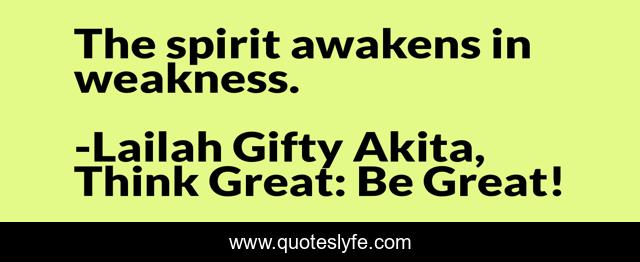 "Lailah Gifty Akita, Think Great: Be Great! Quotes." Quoteslyfe.com, 2025. Mon. 08 Dec. 2025. <https://www.quoteslyfe.com/quote/The-spirit-awakens-in-weakness-104547>.