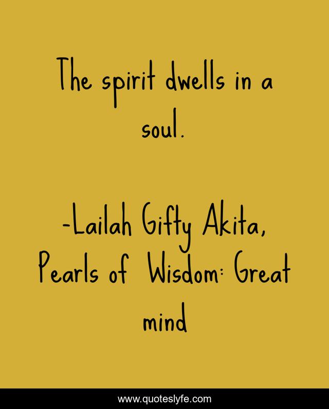 "Lailah Gifty Akita, Pearls of Wisdom: Great mind Quotes." Quoteslyfe.com, 2025. Sat. 06 Dec. 2025. <https://www.quoteslyfe.com/quote/The-spirit-dwells-in-a-soul-63731>.