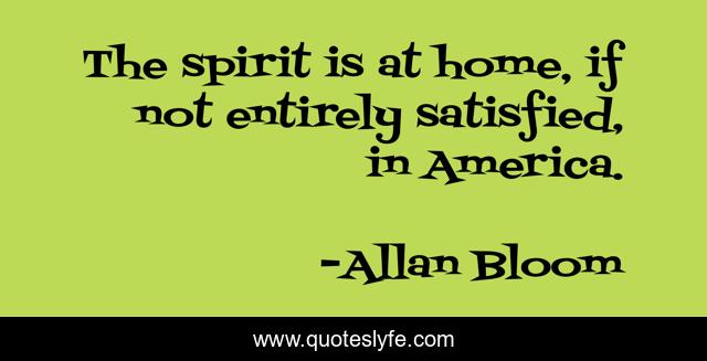 This page presents the quote "The spirit is at home, if not entirely satisfied, in America.". Author of this quote is Allan Bloom. This quote is about america, spirit, satisfied,.
