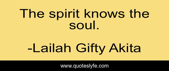 This page presents the quote "The spirit knows the soul.". Author of this quote is Lailah Gifty Akita. This quote is about soul, spirit,.