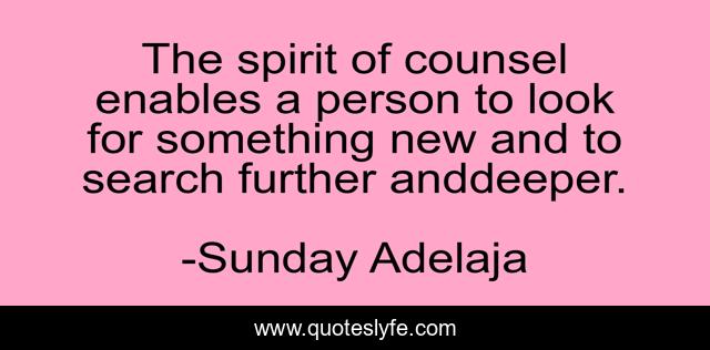 This page presents the quote "The spirit of counsel enables a person to look for something new and to search further anddeeper.". Author of this quote is Sunday Adelaja. This quote is about person, counsel, deeper, spirit,.