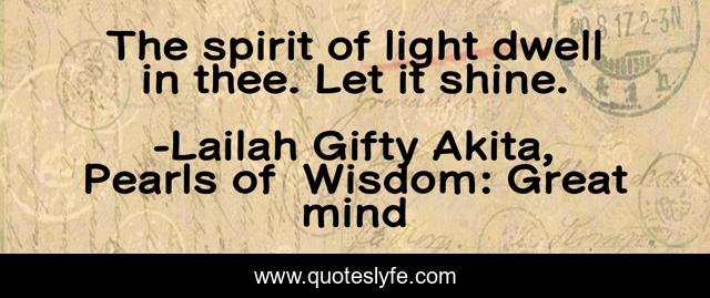 "Lailah Gifty Akita, Pearls of Wisdom: Great mind Quotes." Quoteslyfe.com, 2025. Mon. 08 Dec. 2025. <https://www.quoteslyfe.com/quote/The-spirit-of-light-dwell-in-thee-85485>.