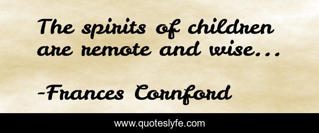 This page presents the quote "The spirits of children are remote and wise...". Author of this quote is Frances Cornford. This quote is about spirits, children, wisdom,.