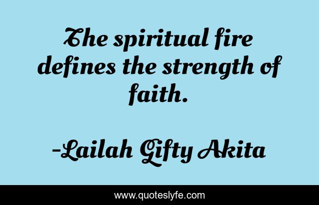 This page presents the quote "The spiritual fire defines the strength of faith.". Author of this quote is Lailah Gifty Akita. This quote is about faith, spiritual, christianity,.