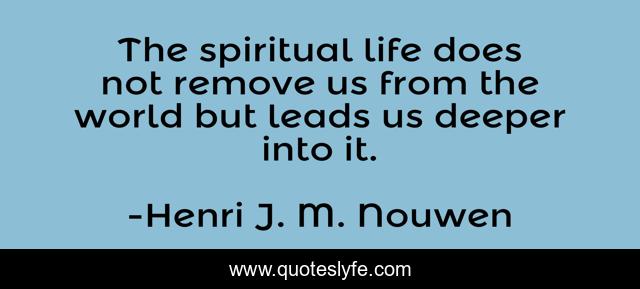 This page presents the quote "The spiritual life does not remove us from the world but leads us deeper into it.". Author of this quote is Henri J. M. Nouwen. .