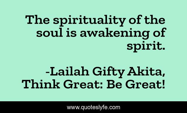 "Lailah Gifty Akita, Think Great: Be Great! Quotes." Quoteslyfe.com, 2025. Mon. 08 Dec. 2025. <https://www.quoteslyfe.com/quote/The-spirituality-of-the-soul-is-awakening-76343>.