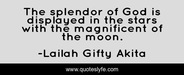 This page presents the quote "The splendor of God is displayed in the stars with the magnificent of the moon.". Author of this quote is Lailah Gifty Akita. This quote is about wise-words, nature, science, creation, moon, stars, god,.