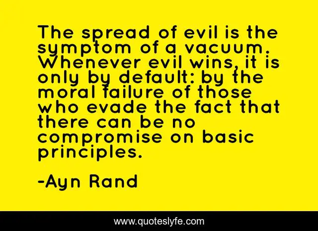 The spread of evil is the symptom of a vacuum. Whenever evil wins, it is only by default: by the moral failure of those who evade the fact that there can be no compromise on basic principles.