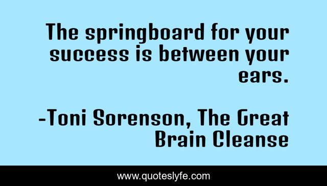 This page presents the quote "The springboard for your success is between your ears.". Author of this quote is Toni Sorenson, The Great Brain Cleanse. This quote is about brain, life, success,.