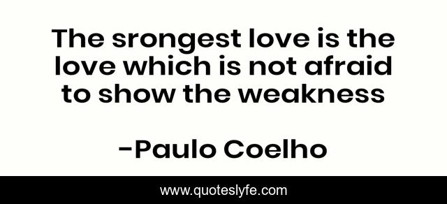 This page presents the quote "The srongest love is the love which is not afraid to show the weakness". Author of this quote is Paulo Coelho. .