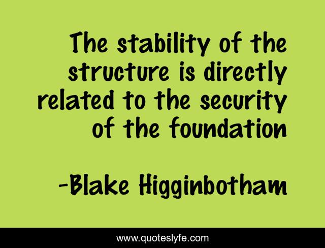 This page presents the quote "The stability of the structure is directly related to the security of the foundation". Author of this quote is Blake Higginbotham. This quote is about foundation, family, house, architect, home, structure,.