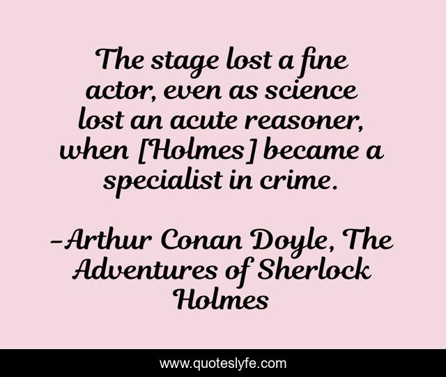"Arthur Conan Doyle, The Adventures of Sherlock Holmes Quotes." Quoteslyfe.com, 2025. Sun. 07 Dec. 2025. <https://www.quoteslyfe.com/quote/The-stage-lost-a-fine-actor-even-193355>.