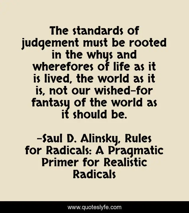 "Saul D. Alinsky, Rules for Radicals: A Pragmatic Primer for Realistic Radicals Quotes." Quoteslyfe.com, 2025. Fri. 05 Dec. 2025. <https://www.quoteslyfe.com/quote/The-standards-of-judgement-must-be-rooted-205466>.