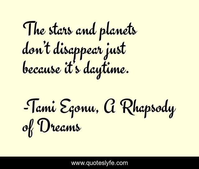 "Tami Egonu, A Rhapsody of Dreams Quotes." Quoteslyfe.com, 2025. Fri. 05 Dec. 2025. <https://www.quoteslyfe.com/quote/The-stars-and-planets-don-t-disappear-132496>.