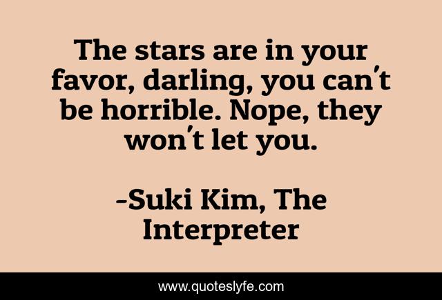 "Suki Kim, The Interpreter Quotes." Quoteslyfe.com, 2025. Sat. 06 Dec. 2025. <https://www.quoteslyfe.com/quote/The-stars-are-in-your-favor-darling-147589>.
