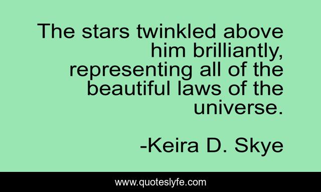 This page presents the quote "The stars twinkled above him brilliantly, representing all of the beautiful laws of the universe.". Author of this quote is Keira D. Skye. This quote is about mermaids, young-adult-fiction, young-adult-novels, young-adult-romance,.