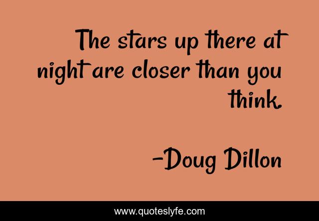 This page presents the quote "The stars up there at night are closer than you think.". Author of this quote is Doug Dillon. This quote is about distance, infinity, space, universe, connectivity, stars, existence, inspiration,.