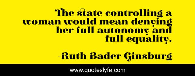 This page presents the quote "The state controlling a woman would mean denying her full autonomy and full equality.". Author of this quote is Ruth Bader Ginsburg. This quote is about woman, her, mean,.