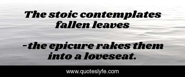 "the epicure rakes them into a loveseat. Quotes." Quoteslyfe.com, 2025. Sat. 06 Dec. 2025. <https://www.quoteslyfe.com/quote/The-stoic-contemplates-fallen-leaves-227239>.