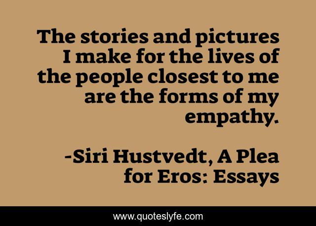This page presents the quote "The stories and pictures I make for the lives of the people closest to me are the forms of my empathy.". Author of this quote is Siri Hustvedt, A Plea for Eros: Essays. This quote is about empathy, stories-life,.