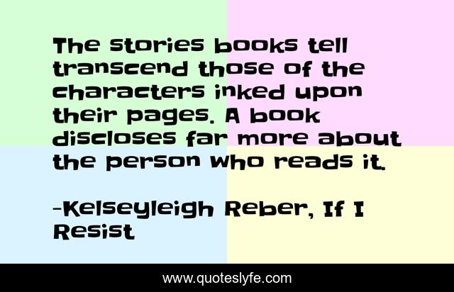 "Kelseyleigh Reber, If I Resist Quotes." Quoteslyfe.com, 2025. Mon. 08 Dec. 2025. <https://www.quoteslyfe.com/quote/The-stories-books-tell-transcend-those-of-112995>.