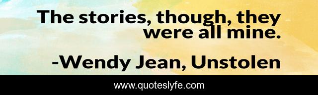 "Wendy Jean, Unstolen Quotes." Quoteslyfe.com, 2025. Sat. 06 Dec. 2025. <https://www.quoteslyfe.com/quote/The-stories-though-they-were-all-mine-180791>.