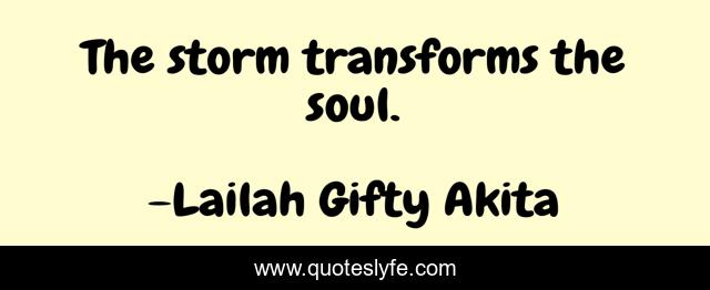 "Lailah Gifty Akita Quotes." Quoteslyfe.com, 2025. Mon. 08 Dec. 2025. <https://www.quoteslyfe.com/quote/The-storm-transforms-the-soul-63513>.