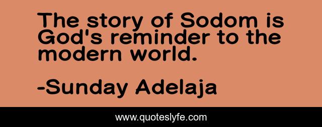 This page presents the quote "The story of Sodom is God's reminder to the modern world.". Author of this quote is Sunday Adelaja. This quote is about story, god, modern, world, reminder, sodom,.