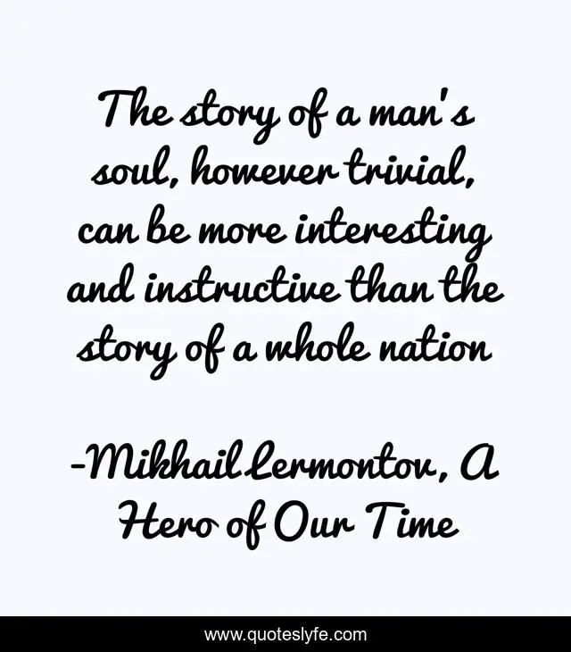 "Mikhail Lermontov, A Hero of Our Time Quotes." Quoteslyfe.com, 2025. Sat. 06 Dec. 2025. <https://www.quoteslyfe.com/quote/The-story-of-a-man-s-soul-180742>.