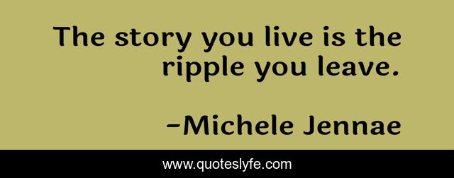 This page presents the quote "The story you live is the ripple you leave.". Author of this quote is Michele Jennae. This quote is about life, stories, story,.