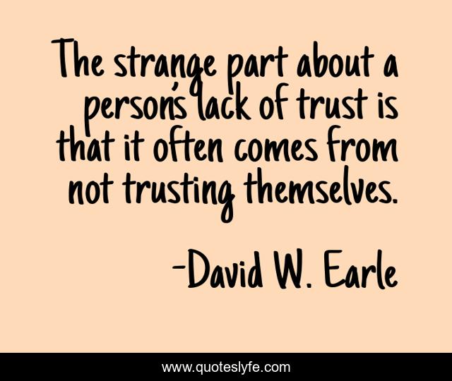 This page presents the quote "The strange part about a person’s lack of trust is that it often comes from not trusting themselves.". Author of this quote is David W. Earle. This quote is about love, recovery, chaos, dysfunctional-families, change, dysfunctional, trust, affection,.