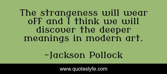 This page presents the quote "The strangeness will wear off and I think we will discover the deeper meanings in modern art.". Author of this quote is Jackson Pollock. This quote is about modern, think,.
