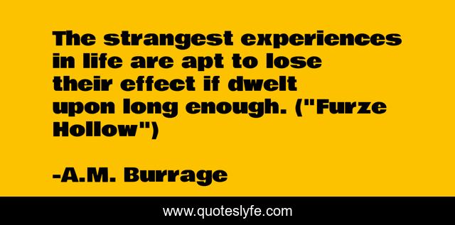 This page presents the quote "The strangest experiences in life are apt to lose their effect if dwelt upon long enough. ("Furze Hollow")". Author of this quote is A.M. Burrage. This quote is about fantasy, strange,.