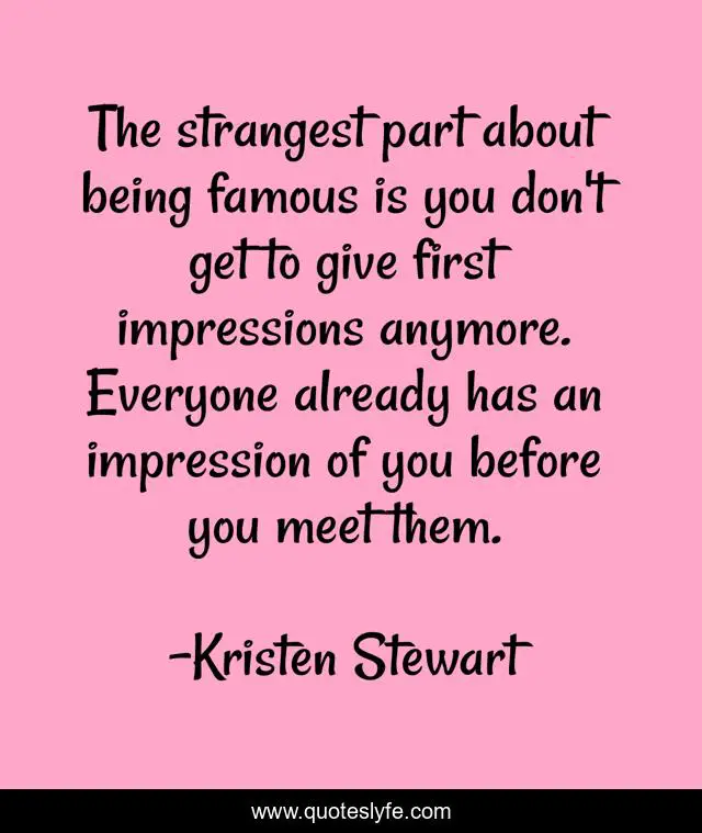 This page presents the quote "The strangest part about being famous is you don't get to give first impressions anymore. Everyone already has an impression of you before you meet them.". Author of this quote is Kristen Stewart. .