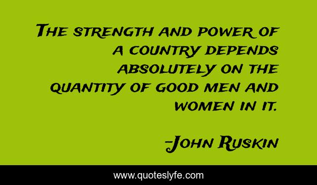 This page presents the quote "The strength and power of a country depends absolutely on the quantity of good men and women in it.". Author of this quote is John Ruskin. This quote is about good, power, women,.