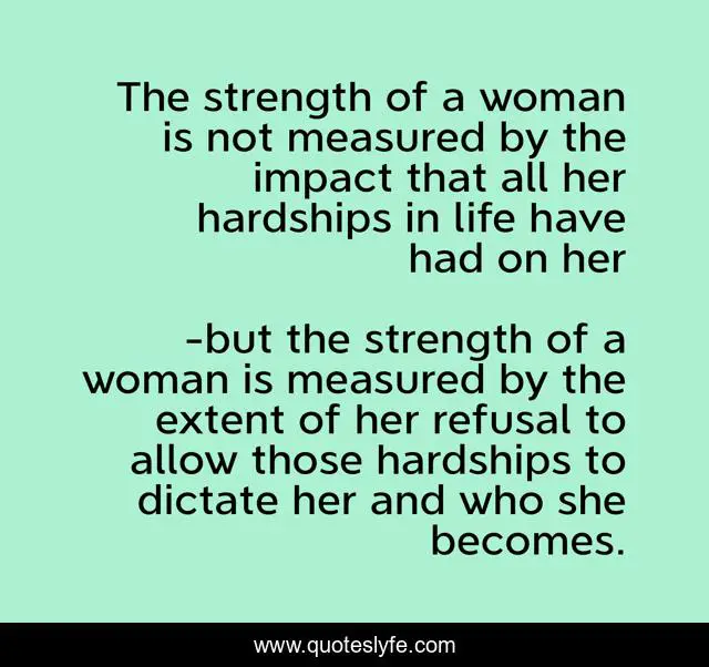 Check all other quotes by but the strength of a woman is measured by the extent of her refusal to allow those hardships to dictate her and who she becomes.